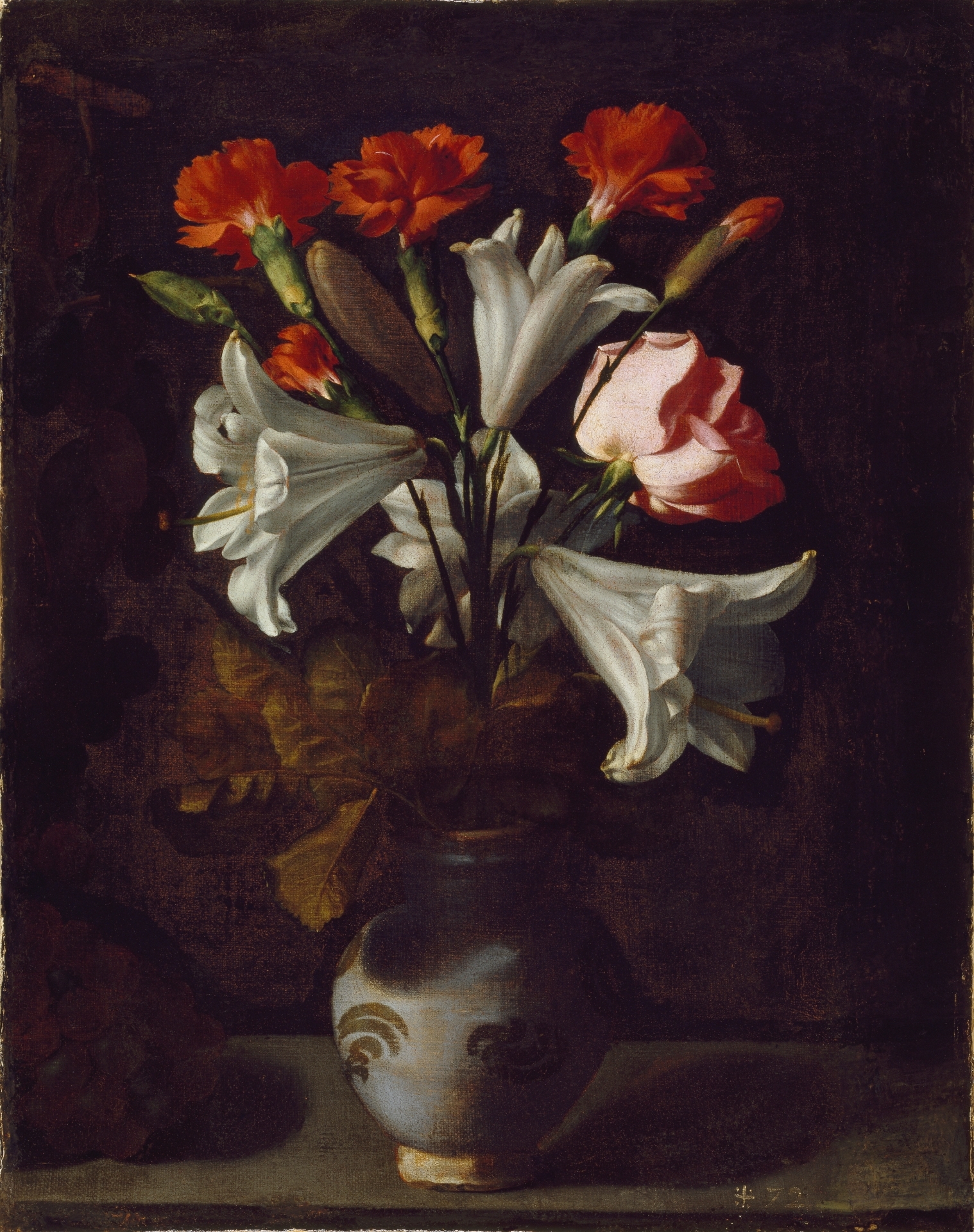 Aunque Palomino, Ponz (1776), Ceán Bermúdez e inventarios de la época confirman su dedicación a la pintura de flores (dedicación que, según una carta del embajador inglés en Madrid, sir Arthur Hopton, a su antecesor en el cargo, sir Francis Cottington, ha sido inspirada por el propio Hopton), sólo se le conoce otro florero aparte del tondo mencionado anteriormente. Este otro florero es el que figura en 1651 en el inventario de Gaspar Méndez de Haro y Guzmán, marqués de Eliche, y el que se puede identificar con el cuadro fragmentado en el Museo del Prado, que hasta 1978 era atribuido a Francisco de Zurbarán.