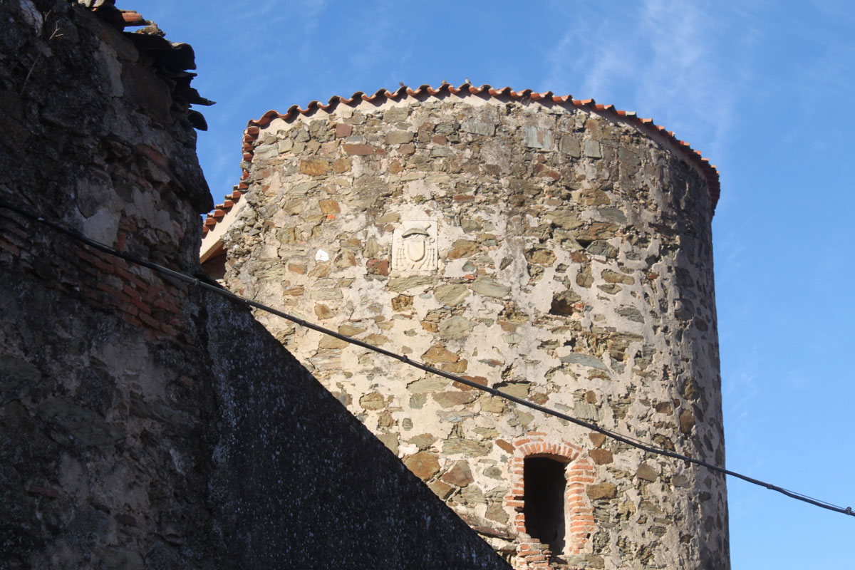 En la casa del cura se puede ver los restos de otra de las torres, ésta es cuadrada y conserva parte de las almenas que defendían sus ocupantes.