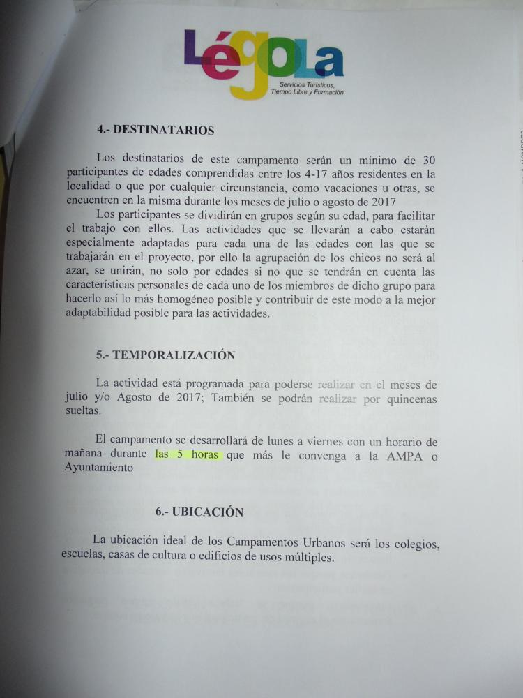 Buenas tardes, como el año pasado, queremos volver a realizar los campamentos urbanos diurnos.