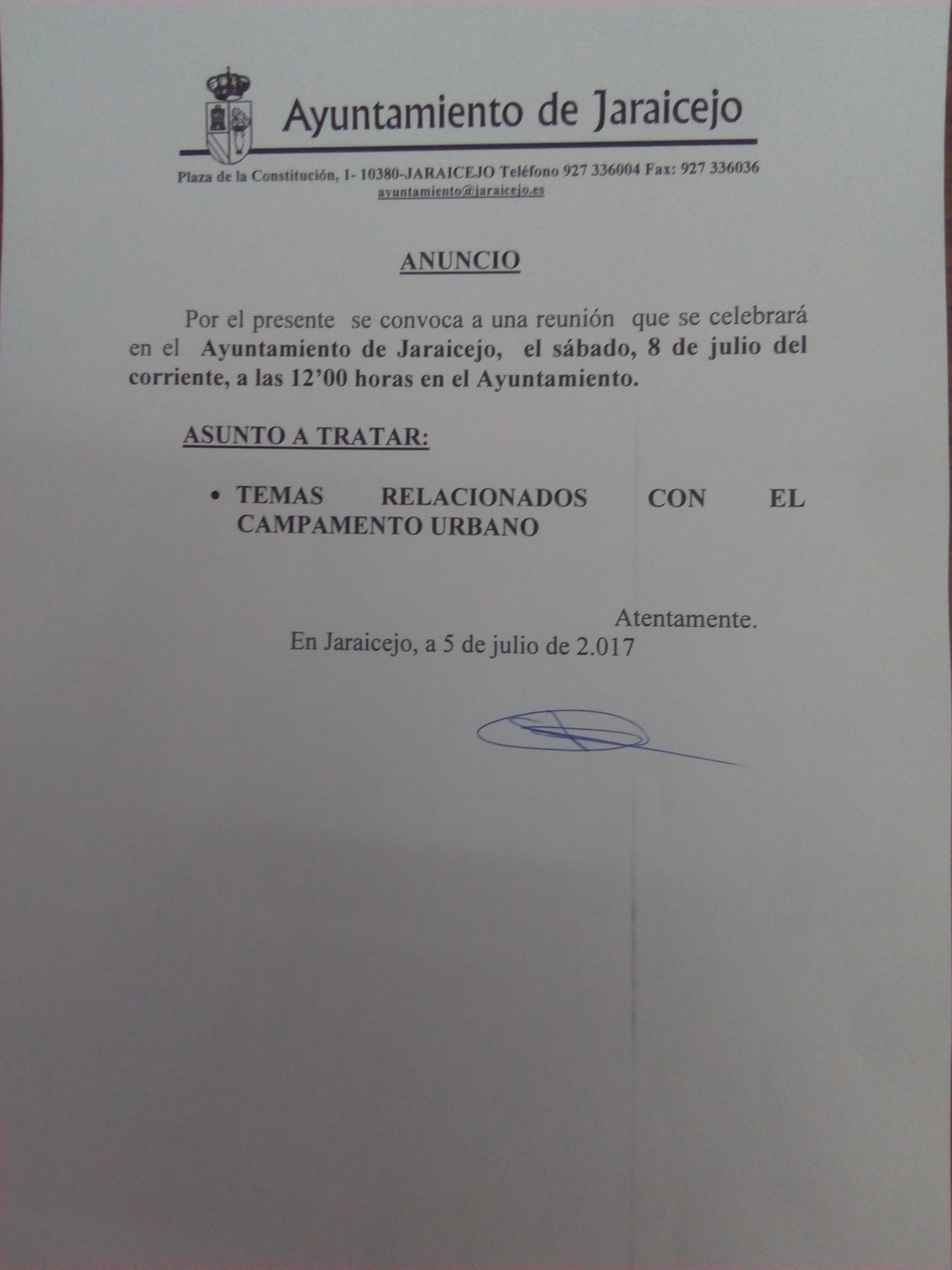 Buenos días! Se convoca una reunión a todas las personas interesadas e inscritas en el campamento urbano para tratar dicho tema. Será en el...