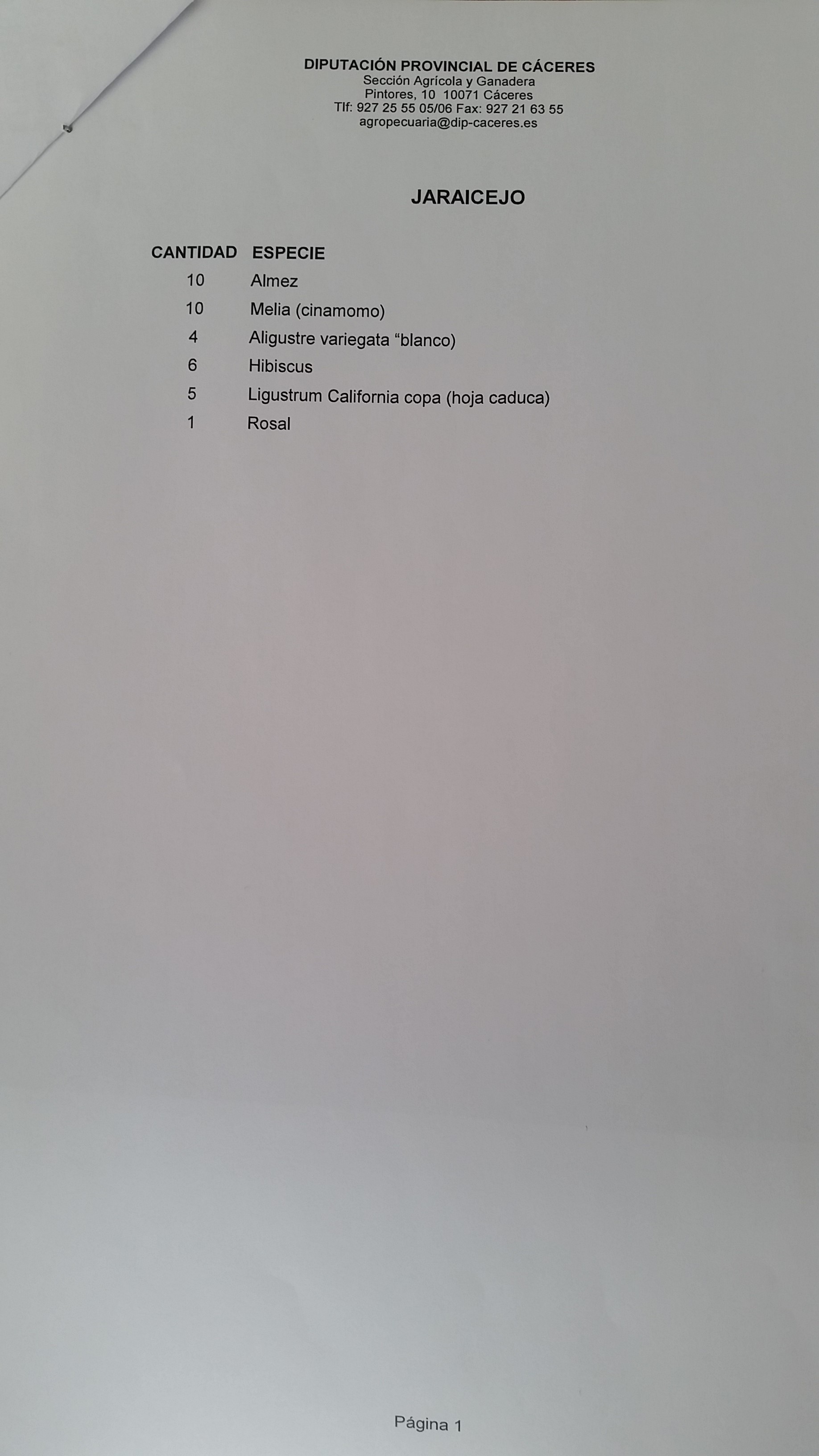 BUENOS DIAS, LA EXCM. DIPUTACION DE CACERES, NOS HA DOTADO DE LA ADJUDICACION DE ARBOLES Y ARBUSTOS, DE LA CAMPAÑA DE ARBOLADO QUE SE HA LLEVADO A CABO ESTE AÑO DESDE LA DIPUTACION.