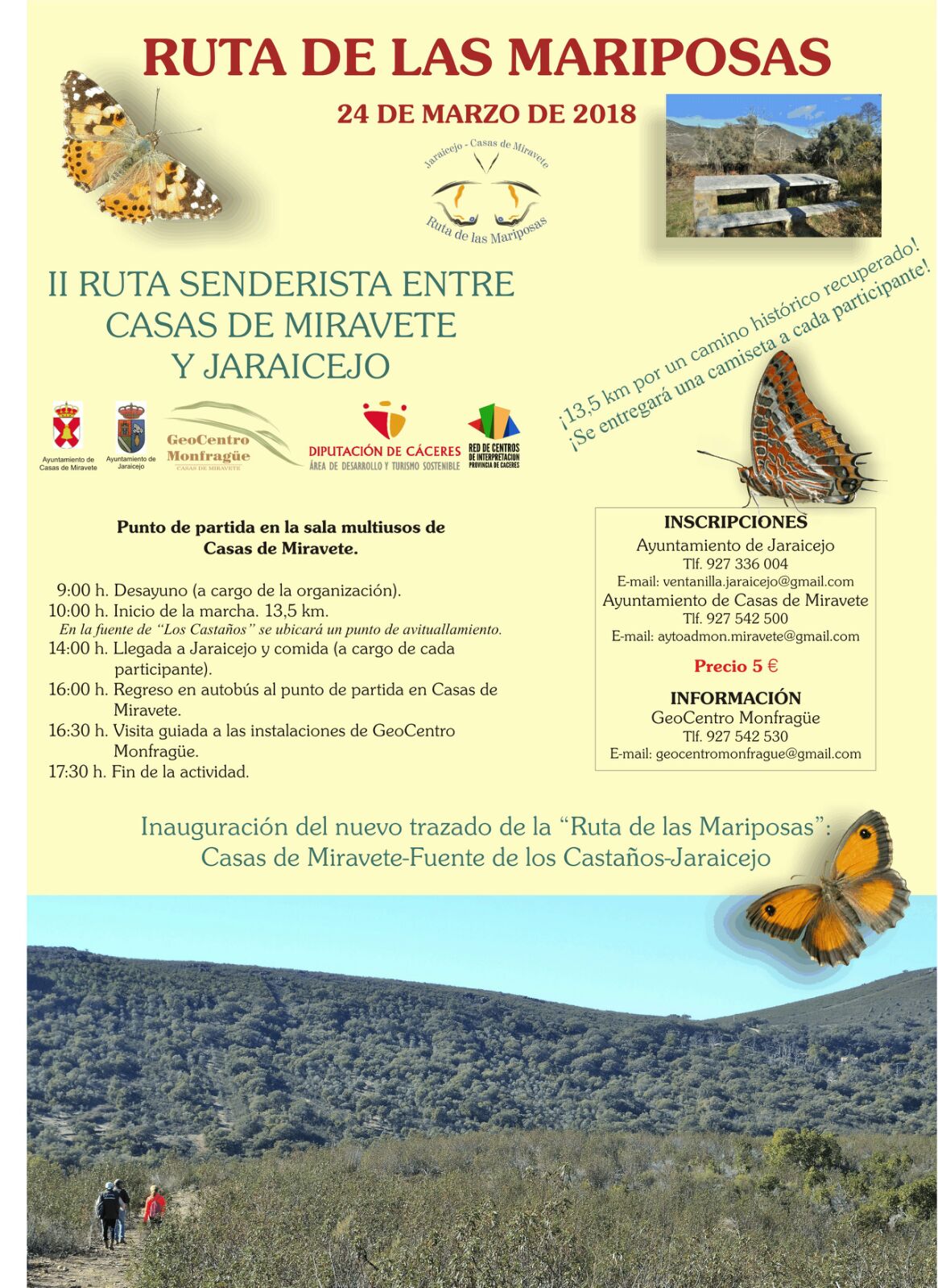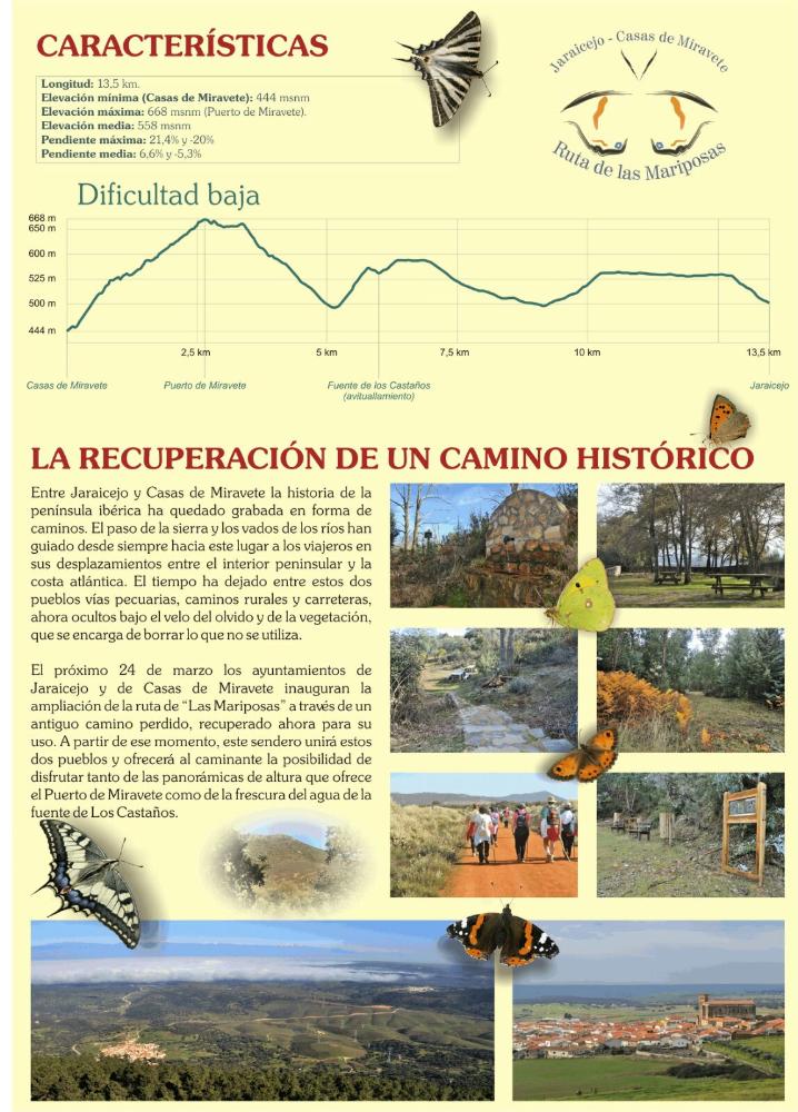 BUENOS DÍAS, POR SEGUNDO AÑO HAREMOS LA RUTA DE LAS MARIPOSAS ENTRE JARAICEJO Y CASAS DE MIRAVETE. ESTE AÑO SE VA A INAUGURAR UN TRAMO NUEVO,...