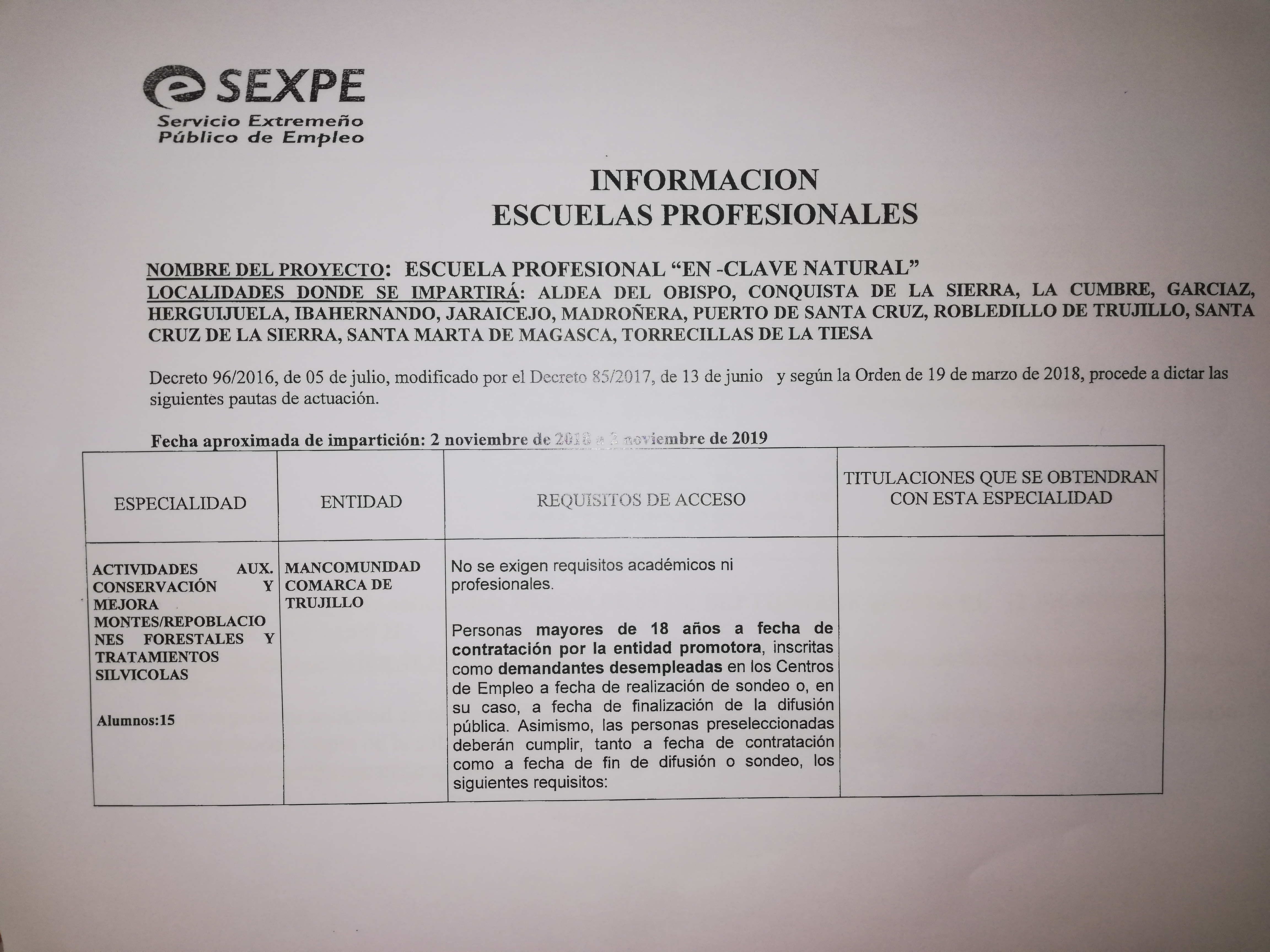 BUENOS DIAS, SE PONE EN CONOCIMIENTO DE TODOS, QUE ESTA ABIERTO EL PLAZO PARA LA INSCRIPCIÓN A LA ESCUELA POFESIONAL " EN -CLAVE NATURAL".